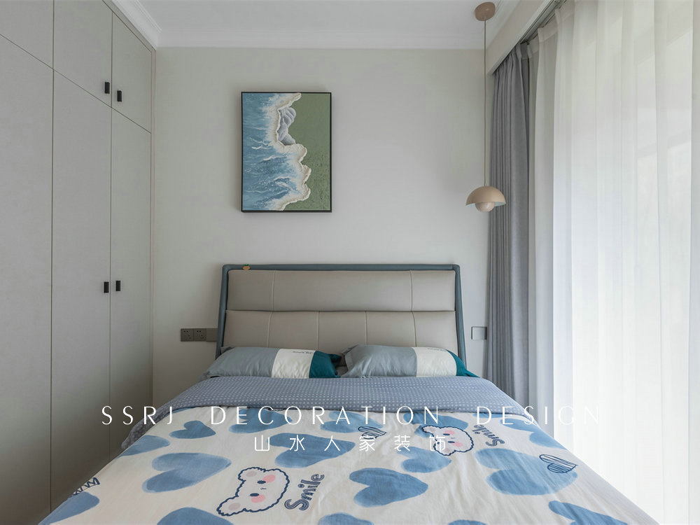 兒童房空間跟陽臺做了一個貫通,就居室規(guī)劃而言,整體形成了客廳——陽臺——次臥之間的溯回動線??臻g關(guān)系愈加親密。加上背靠采光區(qū),達到室內(nèi)光線的明亮,緊湊的臥室面貌瞬間變得大氣起來。