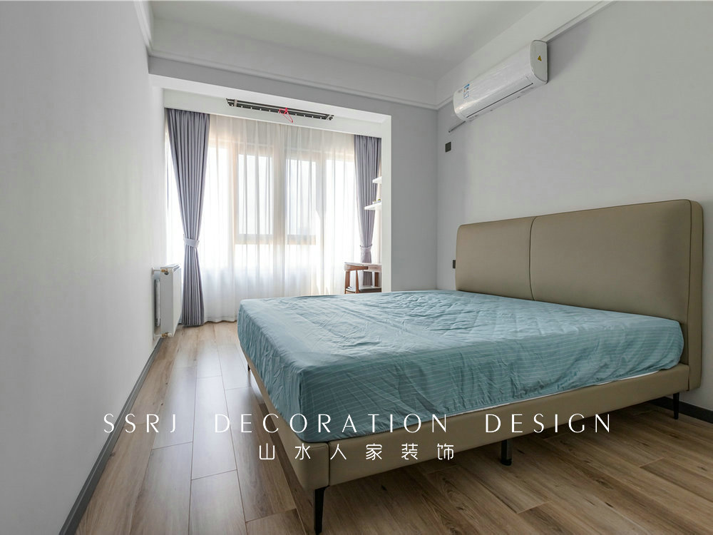主臥空間寬敞大氣,整體采用了高級(jí)灰色的格調(diào),搭配實(shí)木的地板,臥室顯得溫馨又舒適。飄窗的設(shè)計(jì)非常簡(jiǎn)單,閑暇的時(shí)候可以坐著欣賞窗外的景色,放松心情。