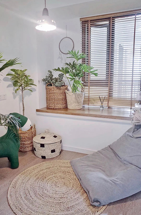 飄窗變榻榻米,會(huì)讓房間顯得更大,效果驚艷。平時(shí)放上矮桌和坐墊,還可充當(dāng)休閑區(qū)使用。