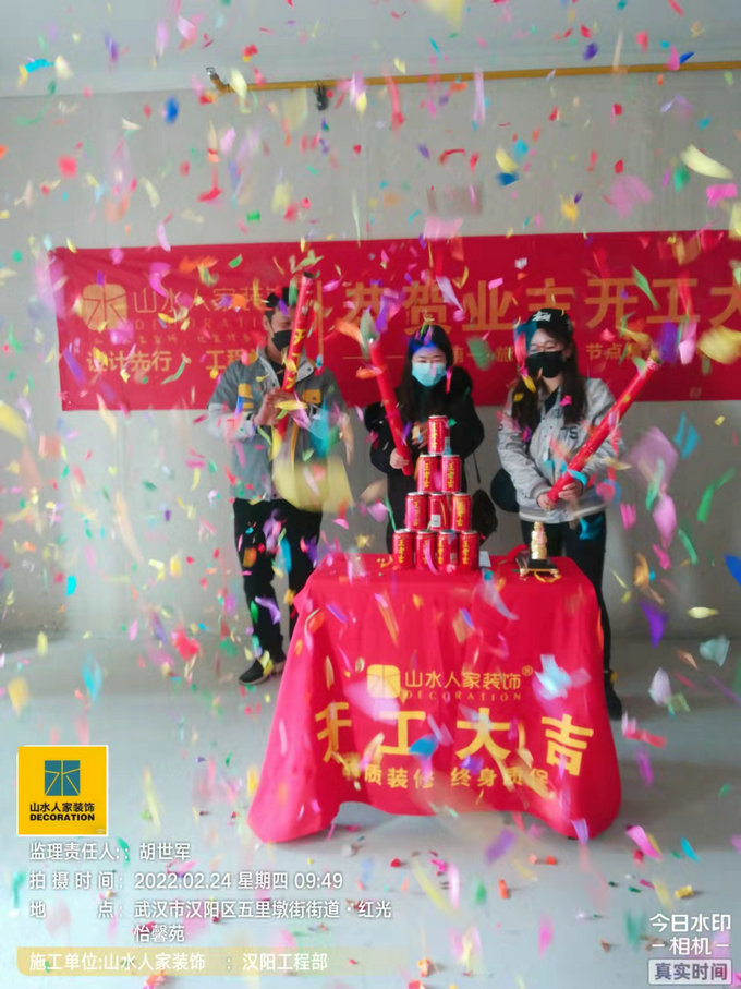 2022年2月24日 山水人家裝飾漢口工程部監(jiān)理在金橋璟園小區(qū)的裝修工地舉行了裝修開工儀式,恭祝業(yè)主裝修開工大吉。
