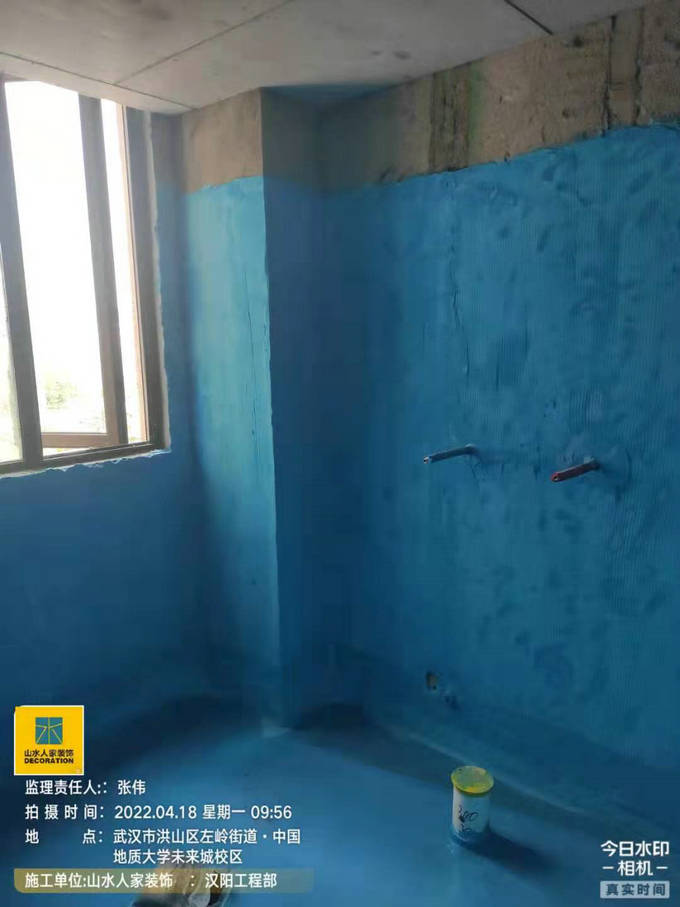 2022年4月18日山水人家裝飾漢陽工程部監(jiān)理在岱家山莊小區(qū)13棟的裝修工地進(jìn)行了防水施工巡檢。